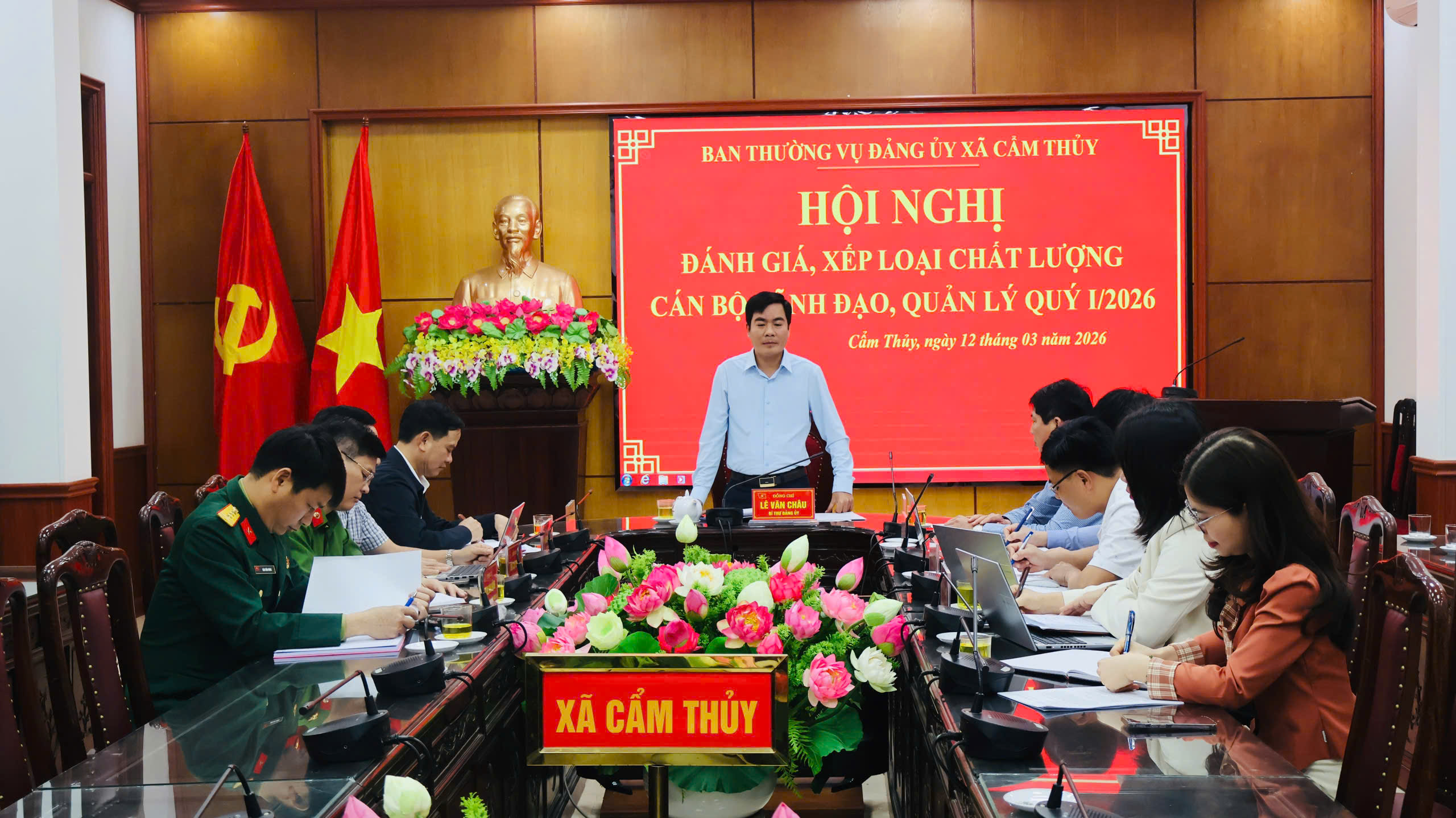 Chiều ngày 12/3/2026, Ban Thường vụ Đảng ủy xã Cẩm Thủy tổ chức hội nghị đánh giá, xếp loại chất lượng cán bộ lãnh đạo, quản lý quý I năm 2026. Đồng chí Lê Văn Châu, Bí thư Đảng ủy, Chủ tịch Hội đồng nhân dân xã chủ trì hội nghị.
