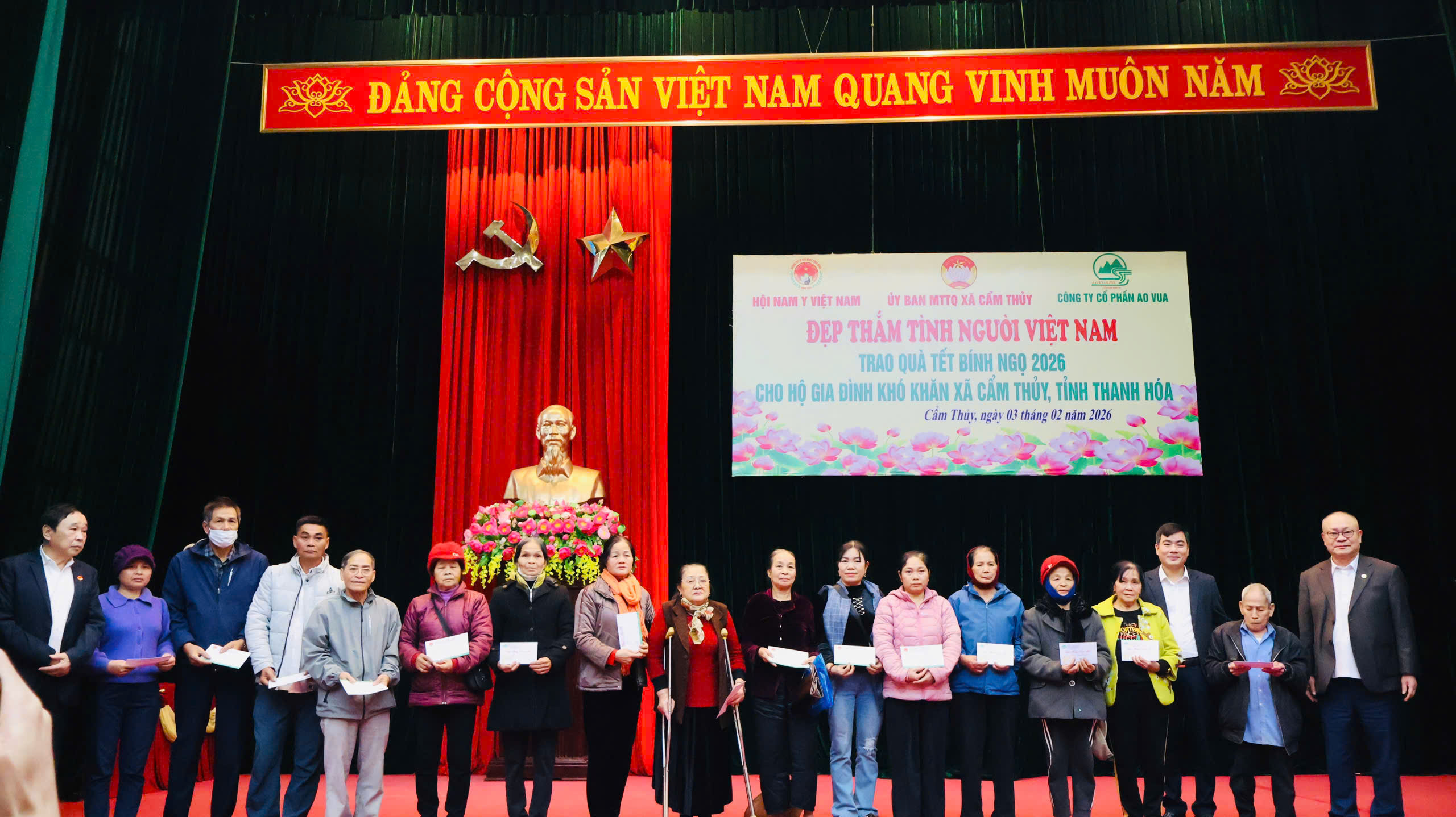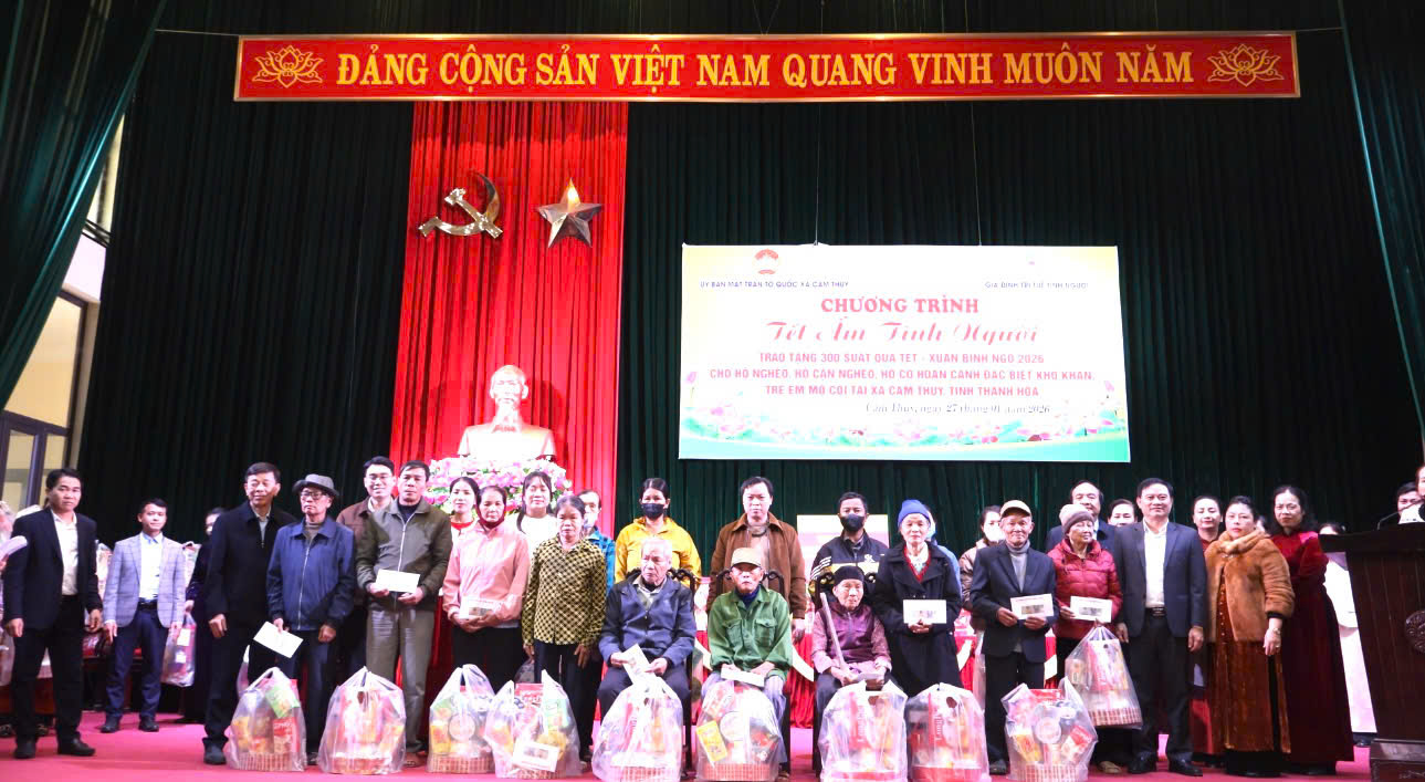 Nhân dịp Tết Nguyên đán Bính Ngọ năm 2026, chiều ngày 27/1, Ủy ban MTTQ xã Cẩm Thủy phối hợp với Gia đình trí tuệ tình người tổ chức Chương trình “Tết ấm tình người” nhằm chăm lo Tết cho các hộ nghèo, hộ cận nghèo, hộ có hoàn cảnh đặc biệt khó khăn và trẻ em mồ côi trên địa bàn xã.